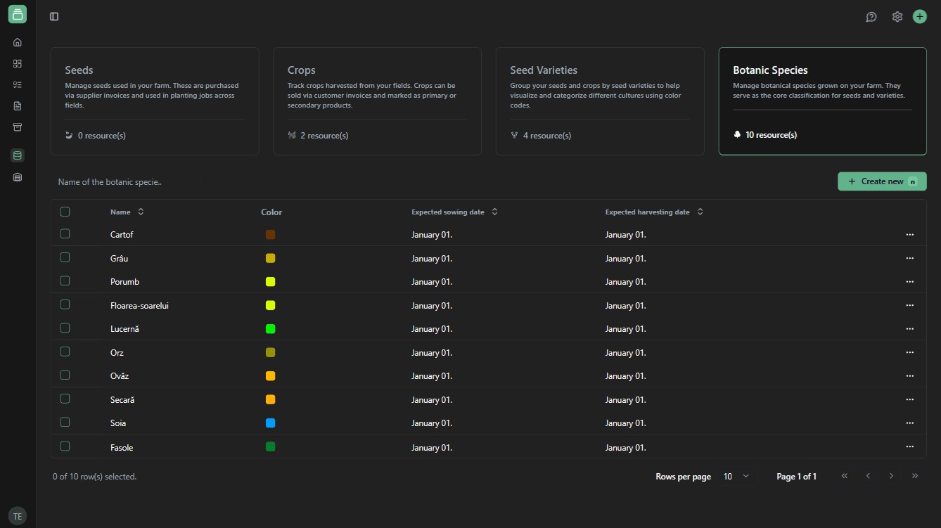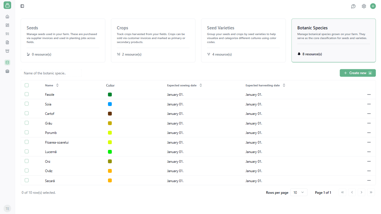 Every farm is unique and so are the tools, crops, and materials that keep it growing. With custom resources, you can create and manage your own database of everything that matters: fertilizers, pesticides, crops, seed varieties, machinery, and trusted suppliers — all tailored to your daily workflow.